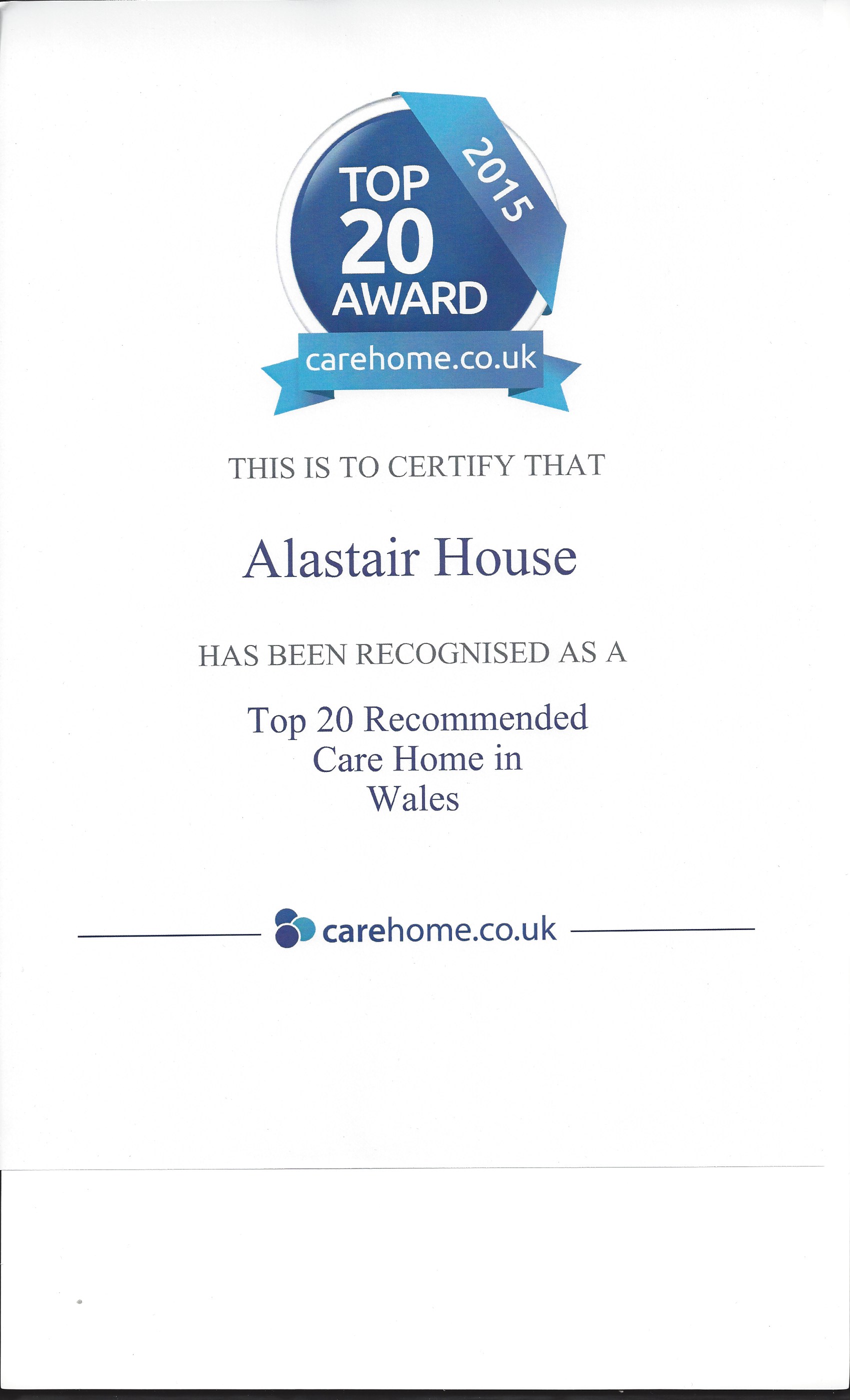 AWARD WINNER CARE HOME ALASTAIR HOUSE